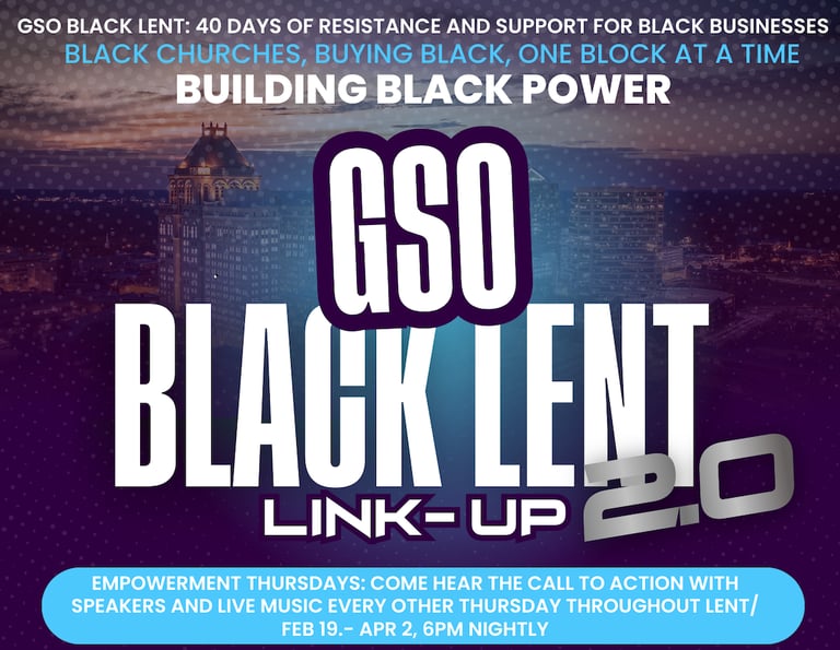 This is a grassroots collective to bring the black community together. Use your mouth and social media to TELL EVERYBODY about the BLACK LENT LINK-UP!