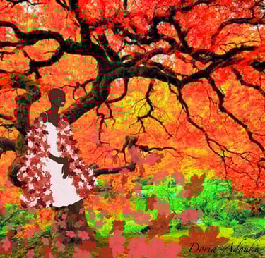 Image: Black Woman and Autumn Leaves by Doria Adoukè