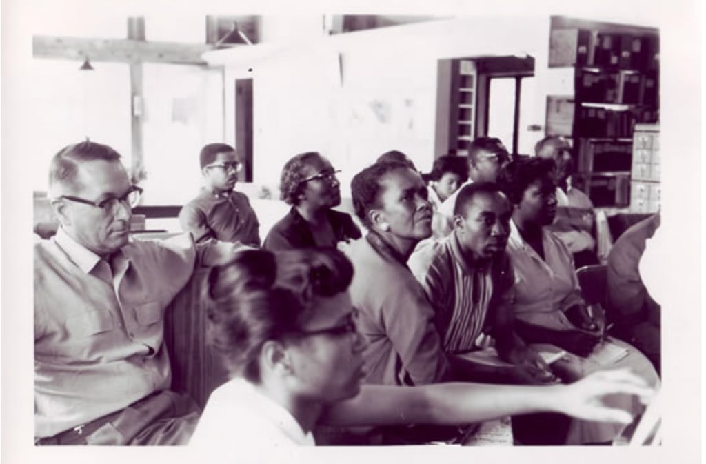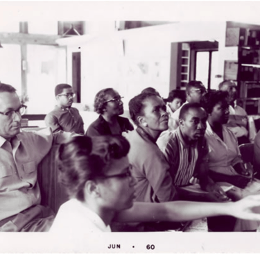 Image: Ella Baker and others at a Highlander Folk School workshop in 1960. Four months later, with the guidance and support of Ella Baker, students of the sit-in movement formed the structure of SNCC in October of 1960.